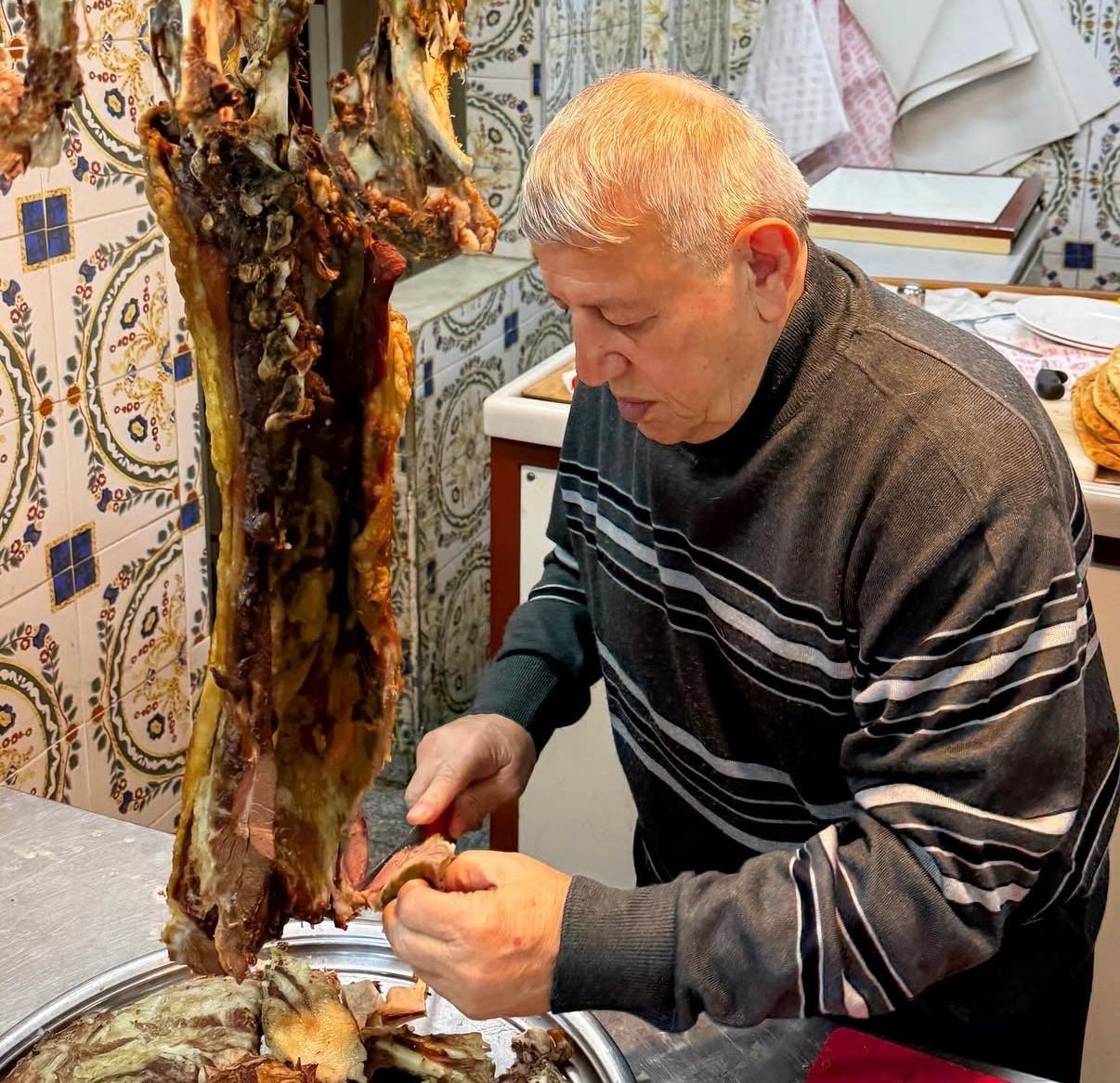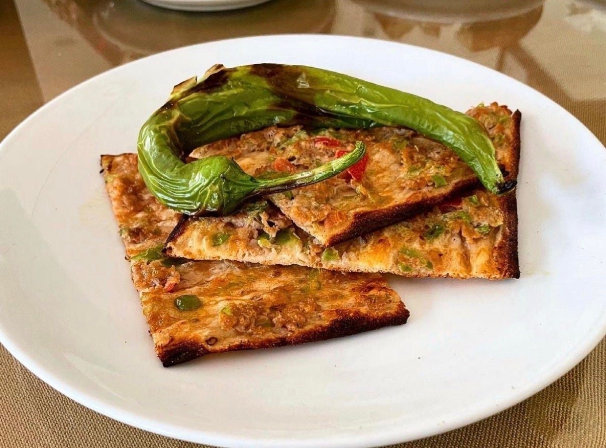 Åžakir Usta operates like a one man machine, handling everything from preparing and kneading the dough to topping and serving the dishes. Long lines form as people travel all the way from Antalya to enjoy his food, making it a truly delightful experience.